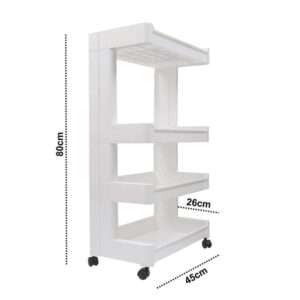 PIYU ENTERPRISE Plastic 4 Tier Kitchen Space Vegetable Storage Folding Saving Organizer Shelf/Shelves/Rack with Wheels White