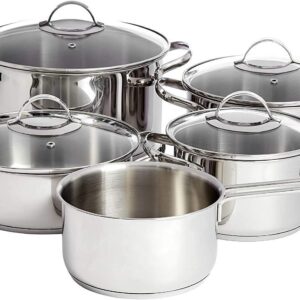 Basics 9-Piece Stainless Steel Induction Cookware Set – Pot with Lids, Saucepan and Casserole