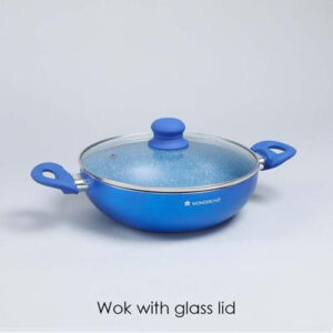Royal Velvet Non-Stick 5-Piece Cookware Set (Fry Pan With Lid, Wok, Dosa Tawa, Mini Fry Pan) Induction Bottom, Soft-Touch Handles, Virgin Grade Aluminium, PFOA/Heavy Metals Free, 3 Mm, 2 Years Warranty, Blue
