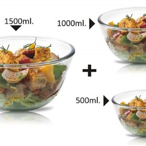 SignoraWare Mixing Bowl Borosilicate Glass, Set of 3, (500ml+1000ml+1500ml), Clear