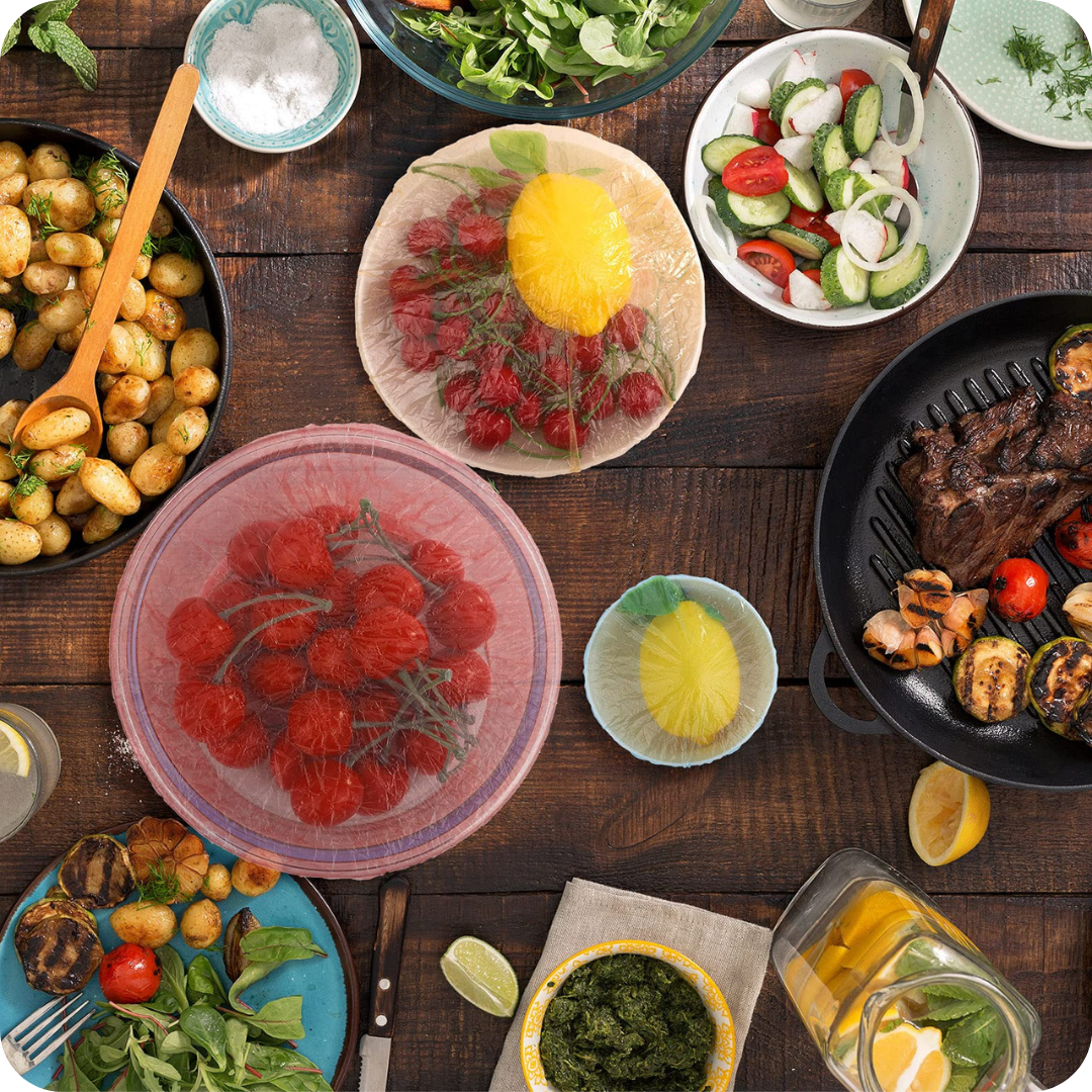 These elastic food storage covers can be stretched and wrapped around any bowls and plates.