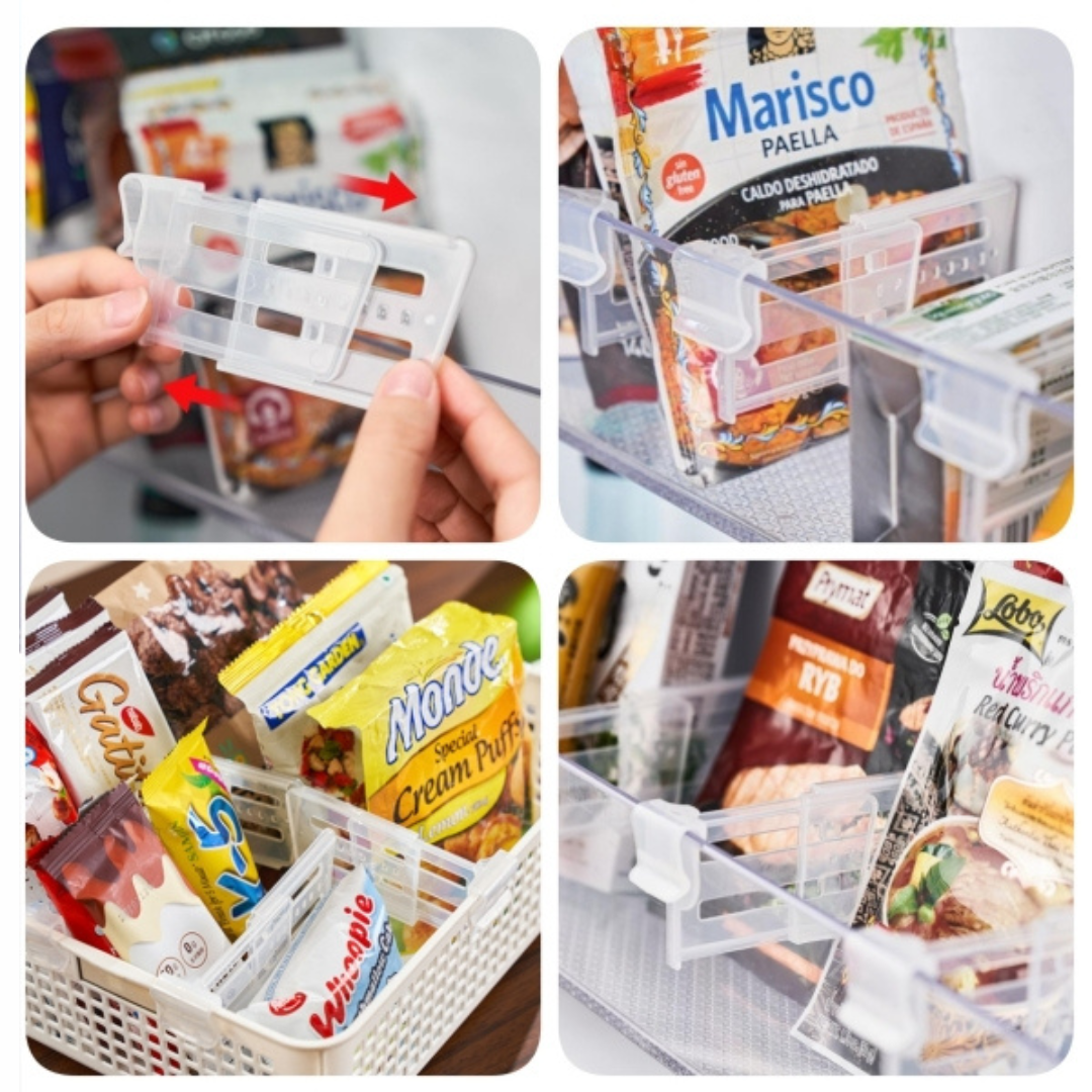 Sorting, storage and orderly placement: bottles, cans, bags, placed neatly to prevent door movement and collision.