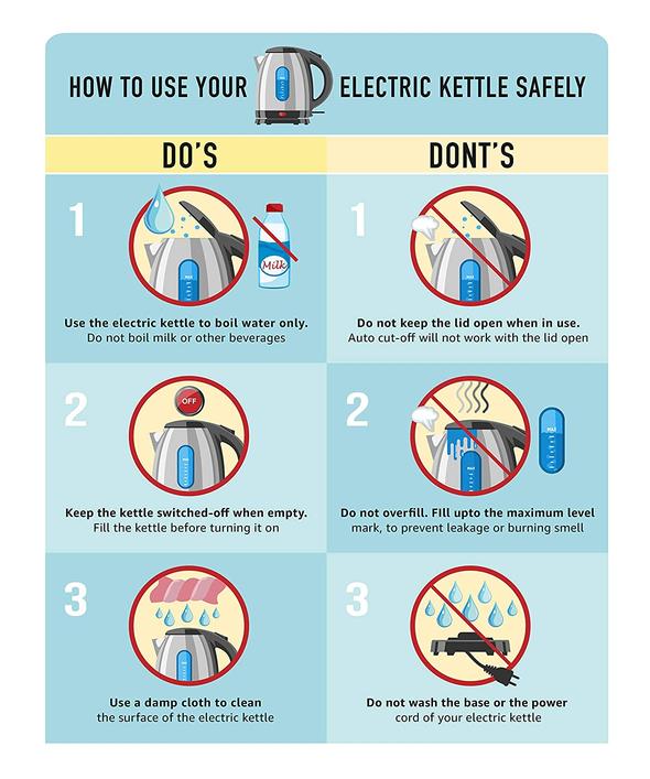 - Auto Shut Off: The Electric kettle will automatically shut off when water boils and its boil dry protection feature will provide years of dependable use