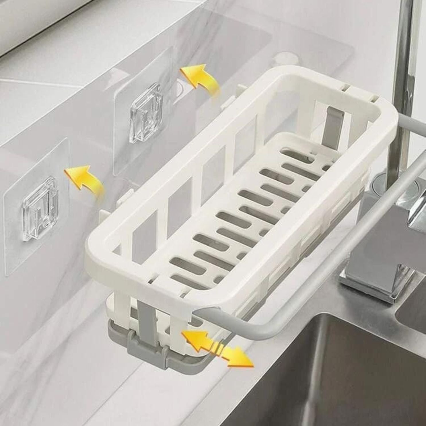 Its retractable design easily expands to fit most sinks—just slide, hook, and you’re good to go. No tools, no hassle!
