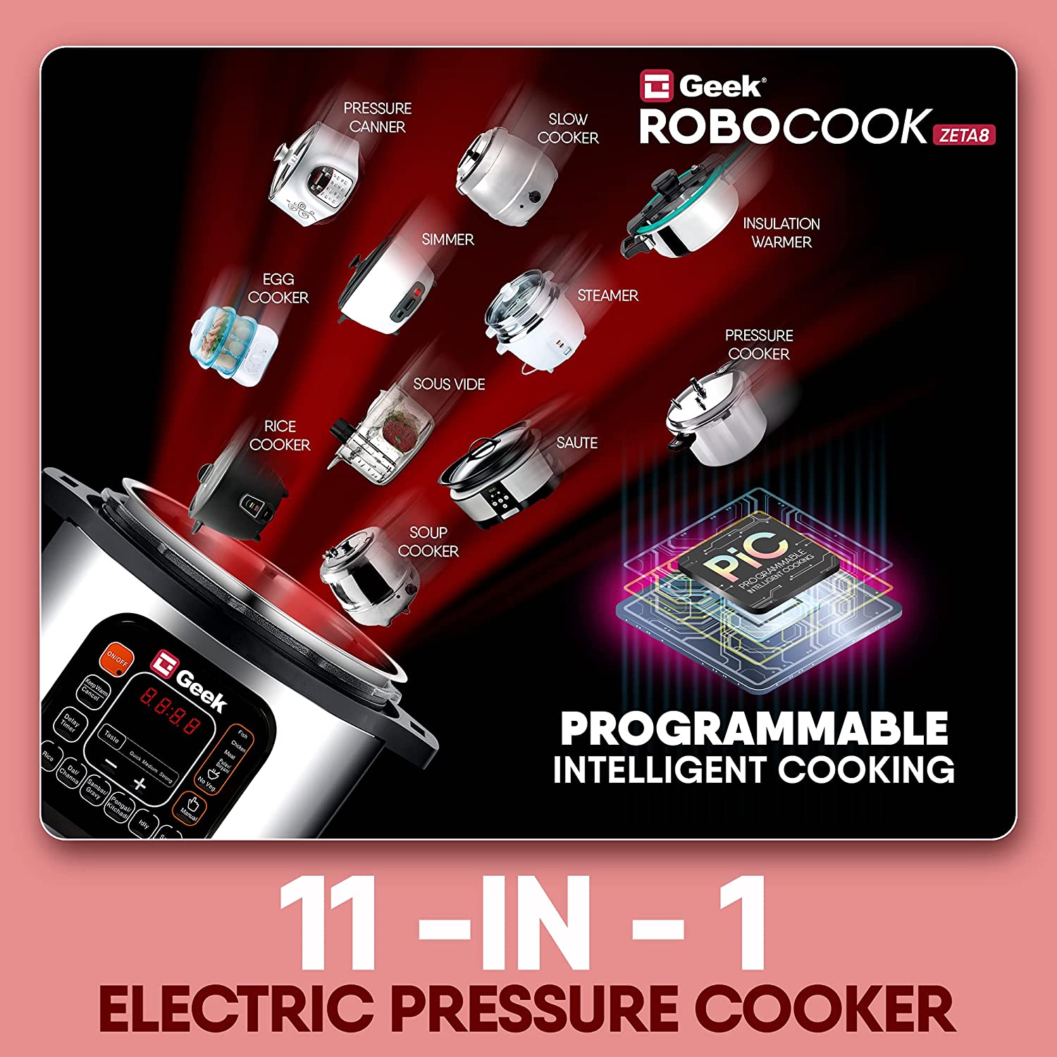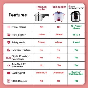 Automatic Electric Pressure Cooker with 11 in 1 Function, Feather Touch Preset Menu (8L)