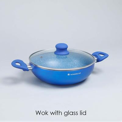 - Enhance your cooking and dining experience with the most popular Wonderchef Royal Velvet cookware range. The marble finish gives the aluminium cookware a stylish and modern look. Wonderchef Royal Velvet Set includes large-sized 24 cm Wok, Fry Pan & 24 cm Dosa Tawa with a common lid, 14 cm Mini Fry Pan, thus providing a complete cooking solution for healthy and low-fat home-cooked meals. Finest non-stick coating for healthy, low fat, and delicious meals.