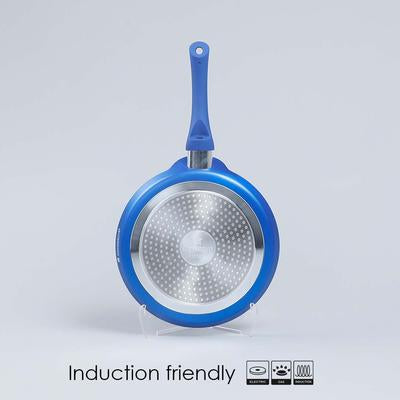 Royal Velvet Non-Stick 5-Piece Cookware Set (Fry Pan With Lid, Wok, Dosa Tawa, Mini Fry Pan) Induction Bottom, Soft-Touch Handles, Virgin Grade Aluminium, PFOA/Heavy Metals Free, 3 Mm, 2 Years Warranty, Blue