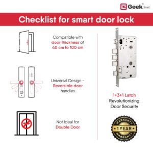ADVANCED FINGERPRINT TECHNOLOGY: No more hassle of carrying and remembering the physical Keys. Geek Smart X403 will be the perfect fingerprint door lock to get keyless entry. You can store up to 120 fingerprints and is the most convenient way to unlock with just one-touch operation.