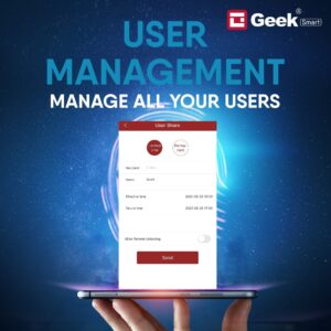 APP MANAGEMENT: Download and Use Geek Smart App from the Google play store and you can manage all the users. Includes deleting expired users or permanent users and view all of the Lock/Unlock records from your phone.