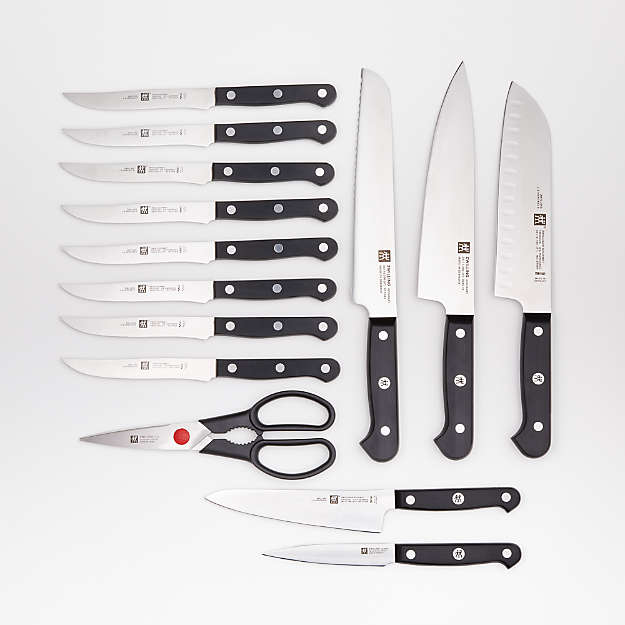 - ZWILLING ® Gourmet Self-Sharpening 15-Piece Set. 14.8″Wx4.63″Dx13″H